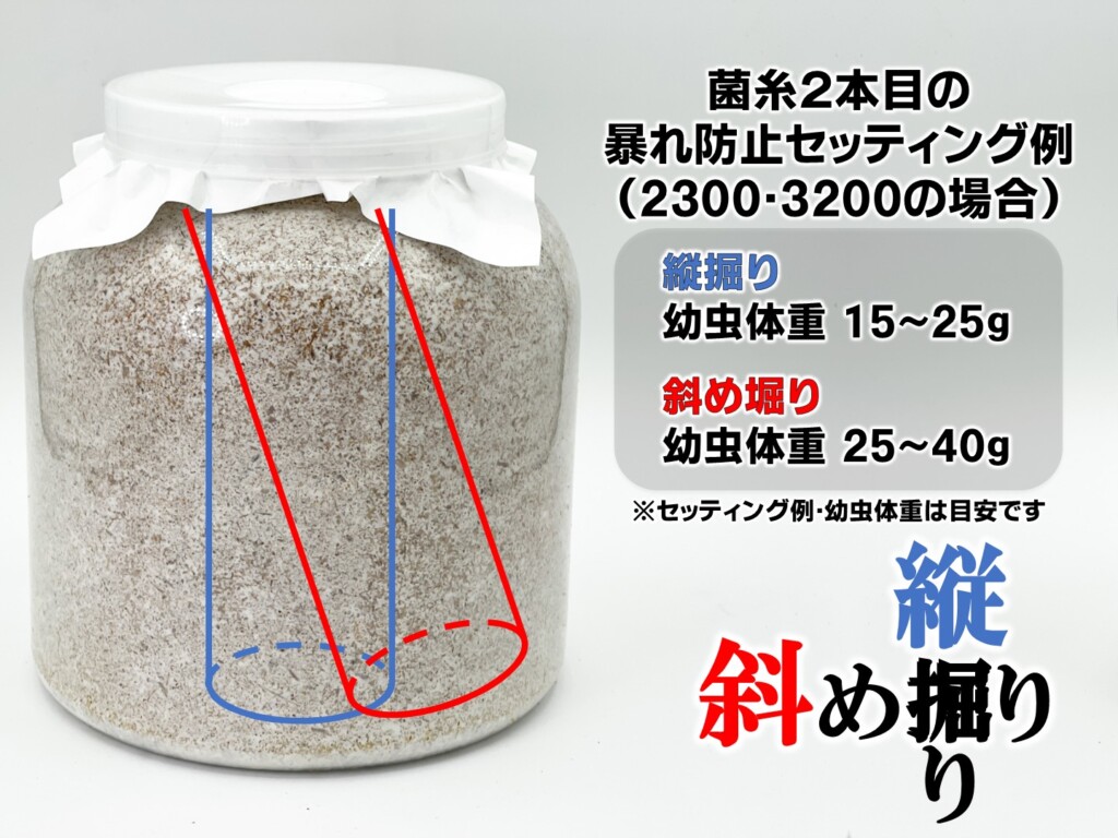 菌糸が崩れないように発菌が完了後、幼虫の大きさ、